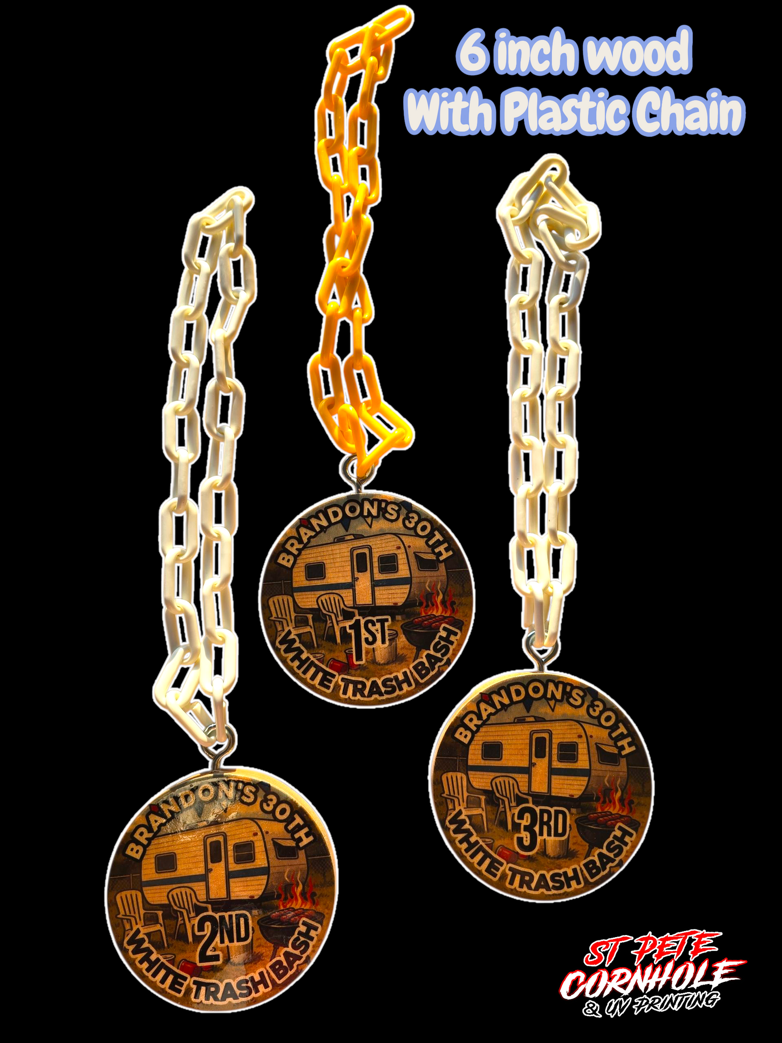 6 inch wood with plastic pvc chain.